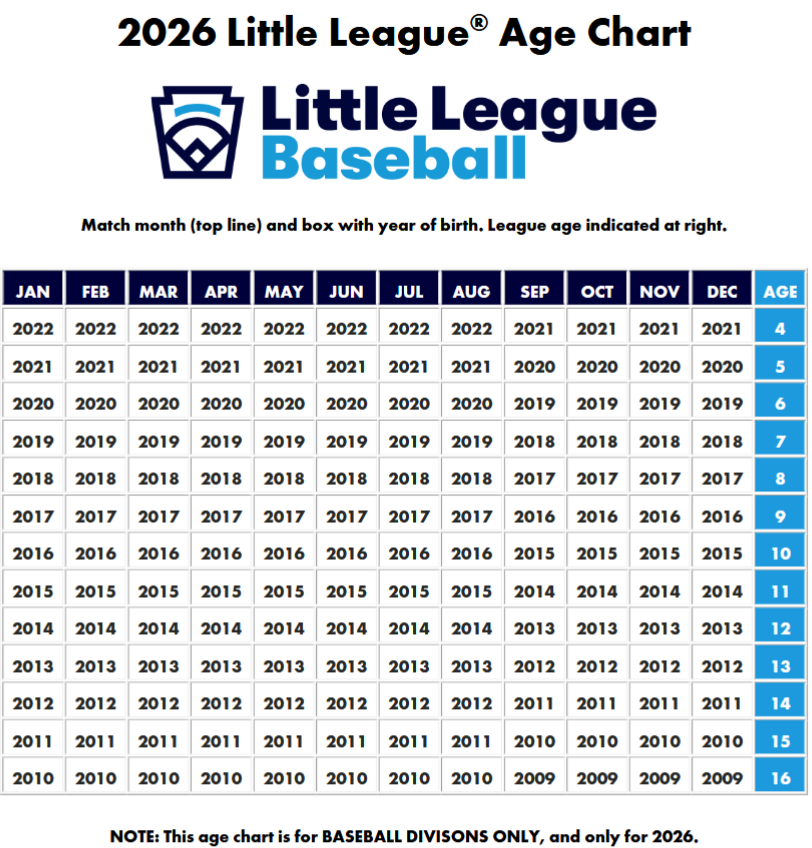 If you don't know your child's Little League Age, click the link for your child’s 2026 Little League Age