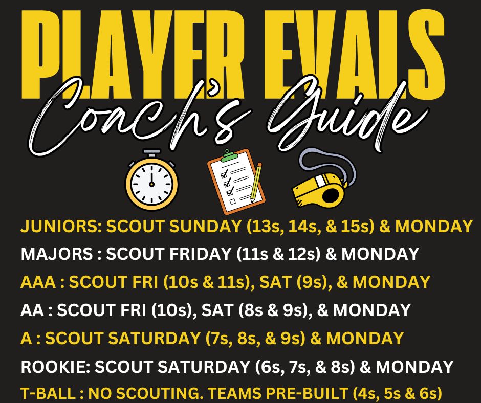 Please read all information carefully. Then click the link below to view your player’s assigned evaluation date and time.